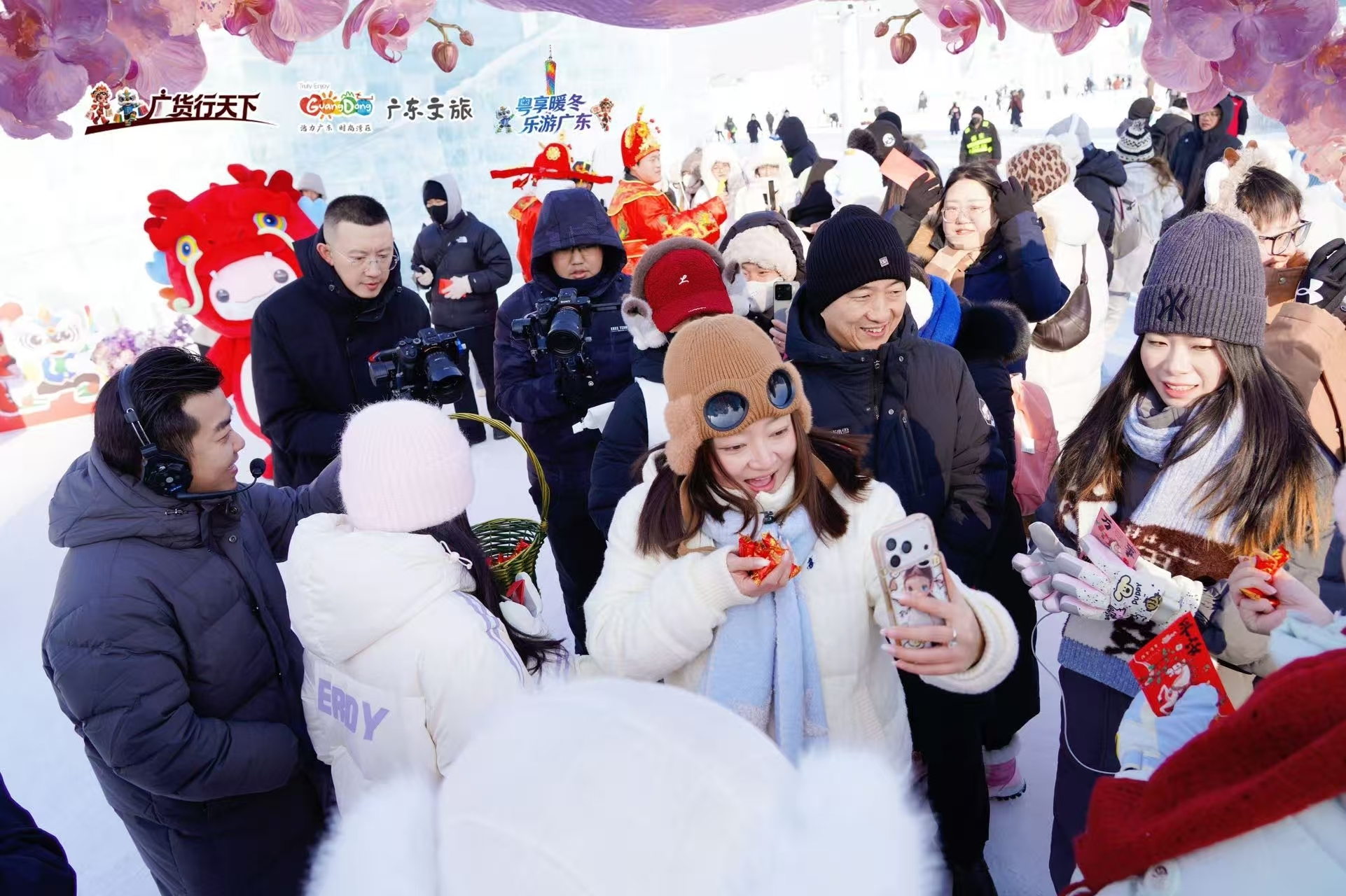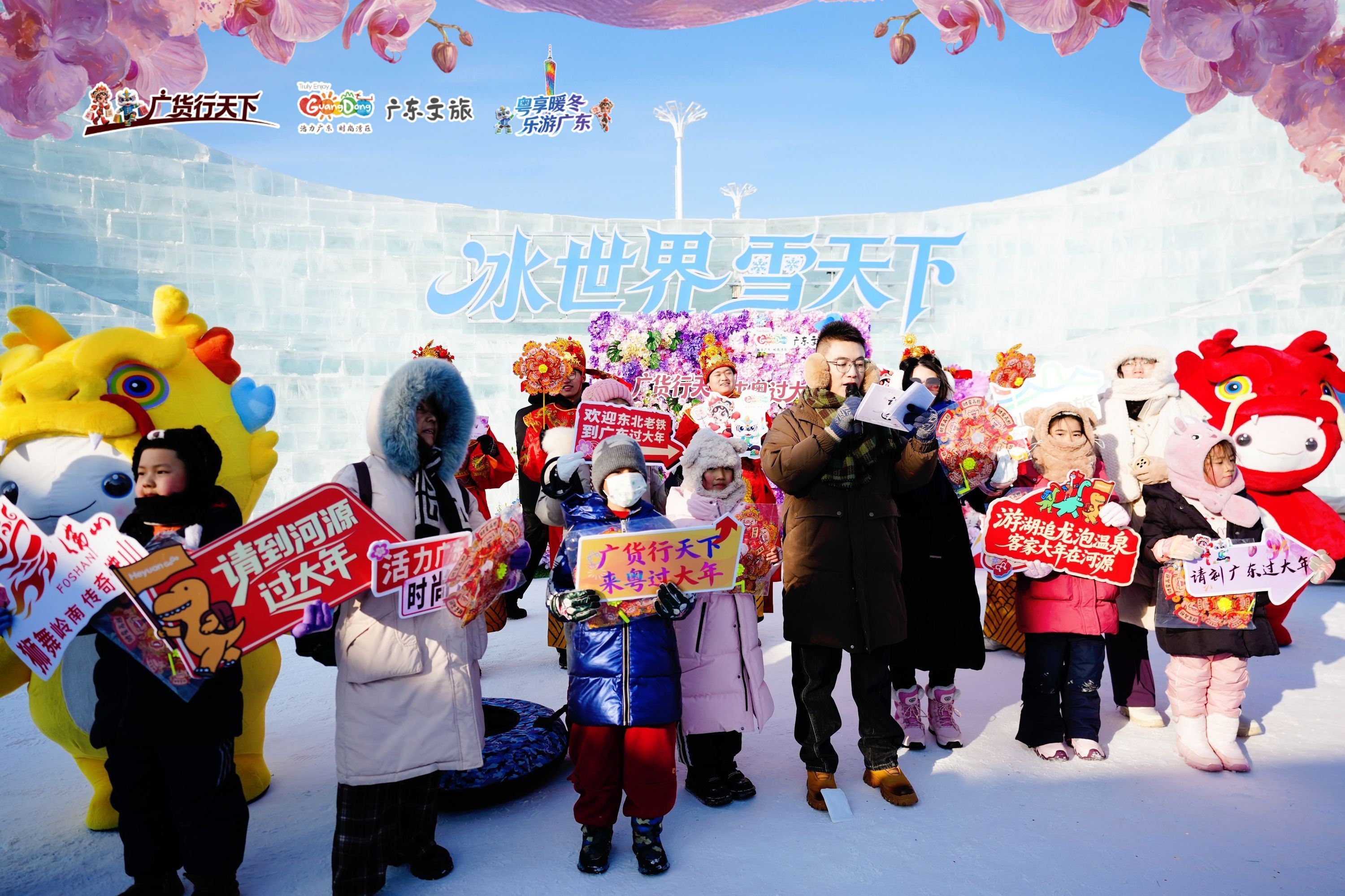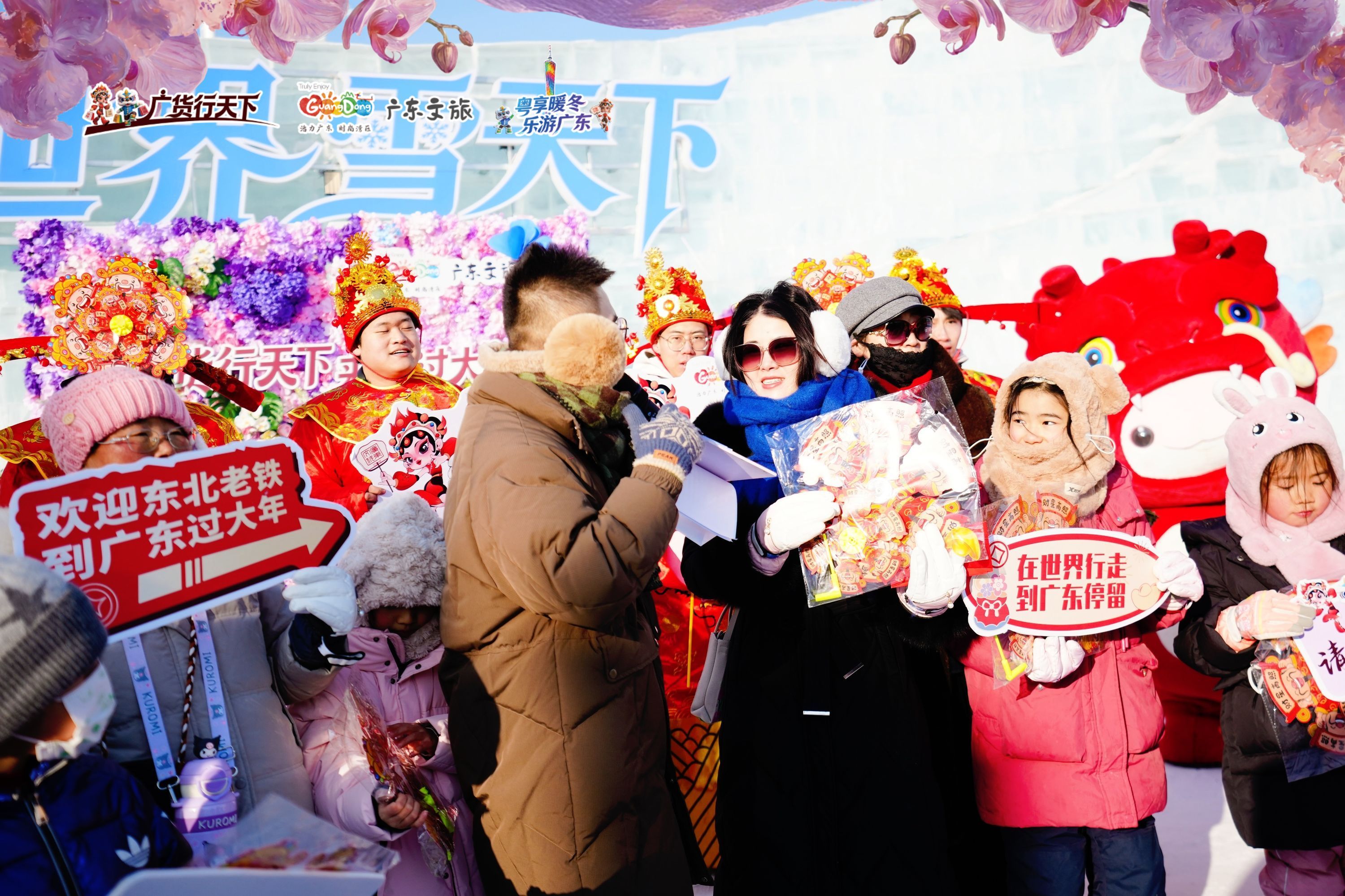 周末两日,哈尔滨中央大街和哈尔滨冰雪大世界迎来了气氛浓烈的广东年味。活动现场不仅有特色场景展示,还安排了醒狮表演、粤语歌演唱、游客互动体验、打卡派发奖品等丰富环节,同时设置了机票抽奖等福利,让北方市民游客近距离感受岭南文化的独特魅力,激发大家赴粤旅游过大年的意愿。“原来广东过年也这么有气氛!”一位哈尔滨市民推介活动现场看到丰富的广东年俗如是感叹。